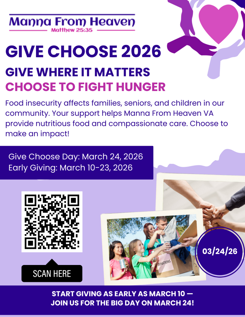 Join us at Manna From Heaven as we provide hope and sustenance to our neighbors through the power of generosity.
